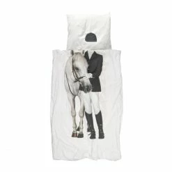 Wovon träumt Ihr Kind nachts? Was begeistert Ihr Kind jeden Tag? Was belebt seine Fantasie? Wenn es der Traum des Rittes auf einem Pferd ist und als Jockey einmal durch Wald und Felder zu reiten, dann ist die SNURK Amazone Bettwäsche-Garnitur – Reiterinnen-Motiv ideal für Ihr Kinderzimmer. Dank des innovativen, sehr pfiffigen Print-Motivs sieht es im Schlaf in dieser Bettwäsche-Garnitur fast so aus, als ob die schlafende Person Bestandteil des Motivs ist. Die Bettwäsche SNURK Amazone weist neben einer hochwertigen Verarbeitung aus 100% Baumwolle auch einen verdeckten Qualitäts-Reißverschluss zum einfachen Beziehen und Waschen der Bettwäsche auf. Kurzum: Mit der Bettwäsche SNURK Amazone werden Kinderträume wahr!